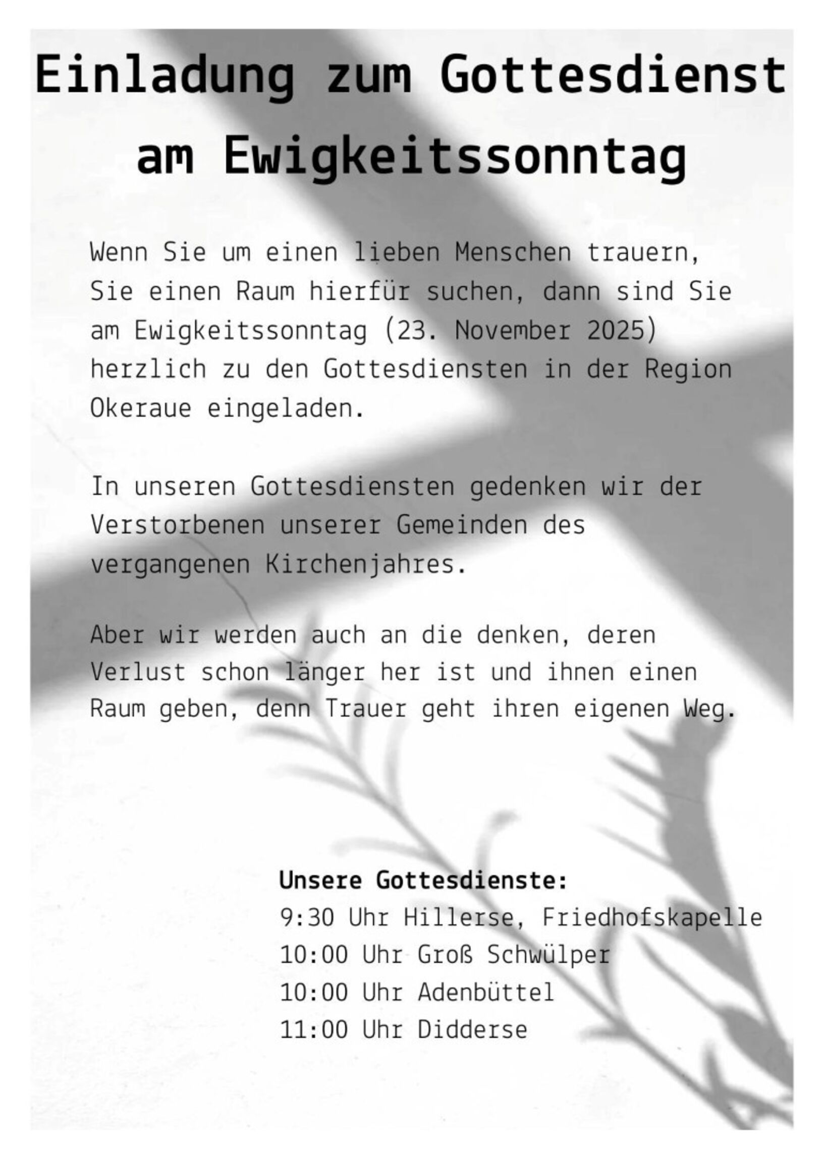 Wir feiern Ewigkeitssonntag in der Region